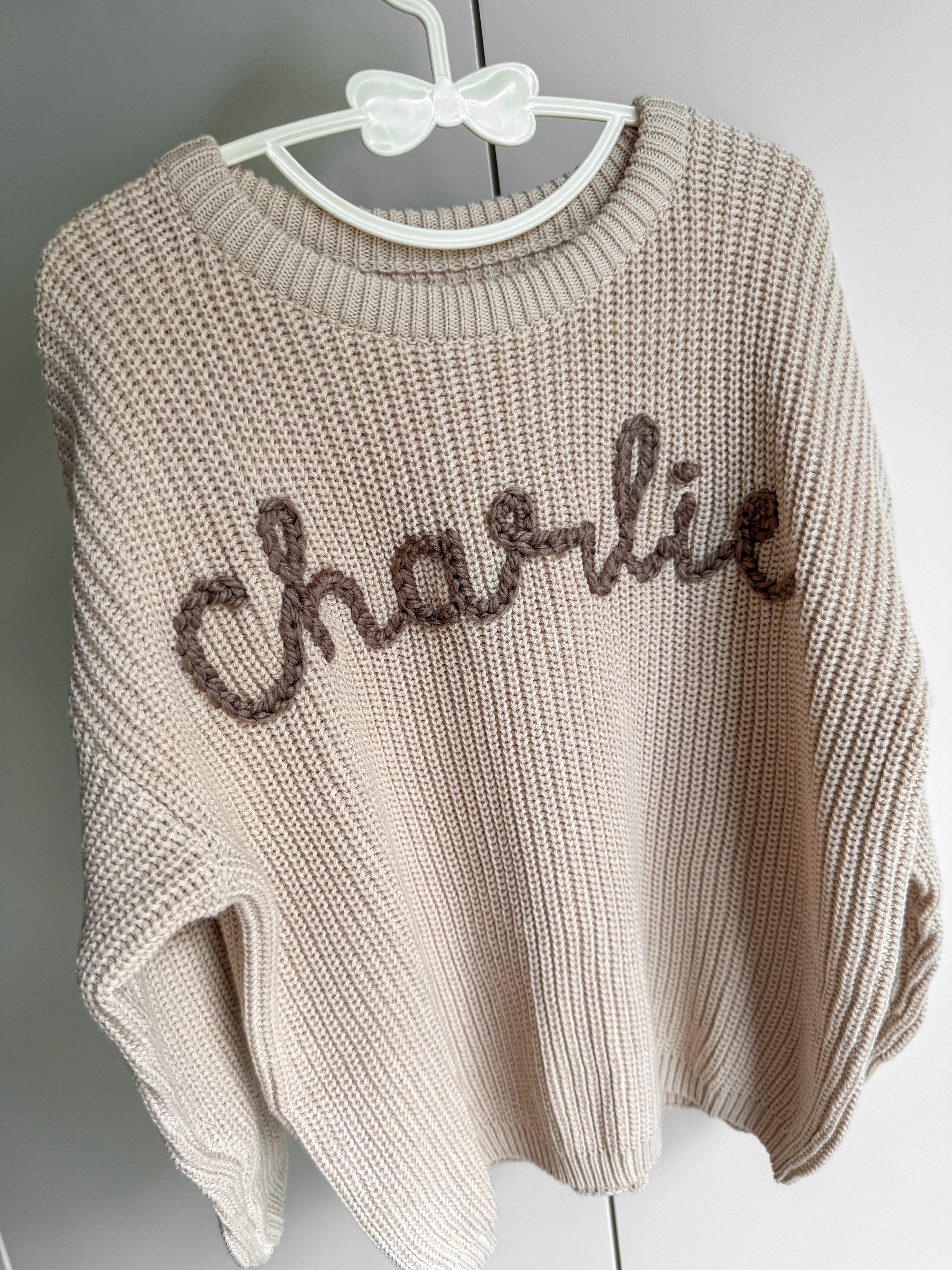 Vi älskar att se er bära våra handbroderade namntröjor! Tagga oss på Instagram @knotsndots.se för en chans att synas på vår hemsida. Dela din unika stil och inspirera andra med din personliga Knots ’N Dots-tröja.